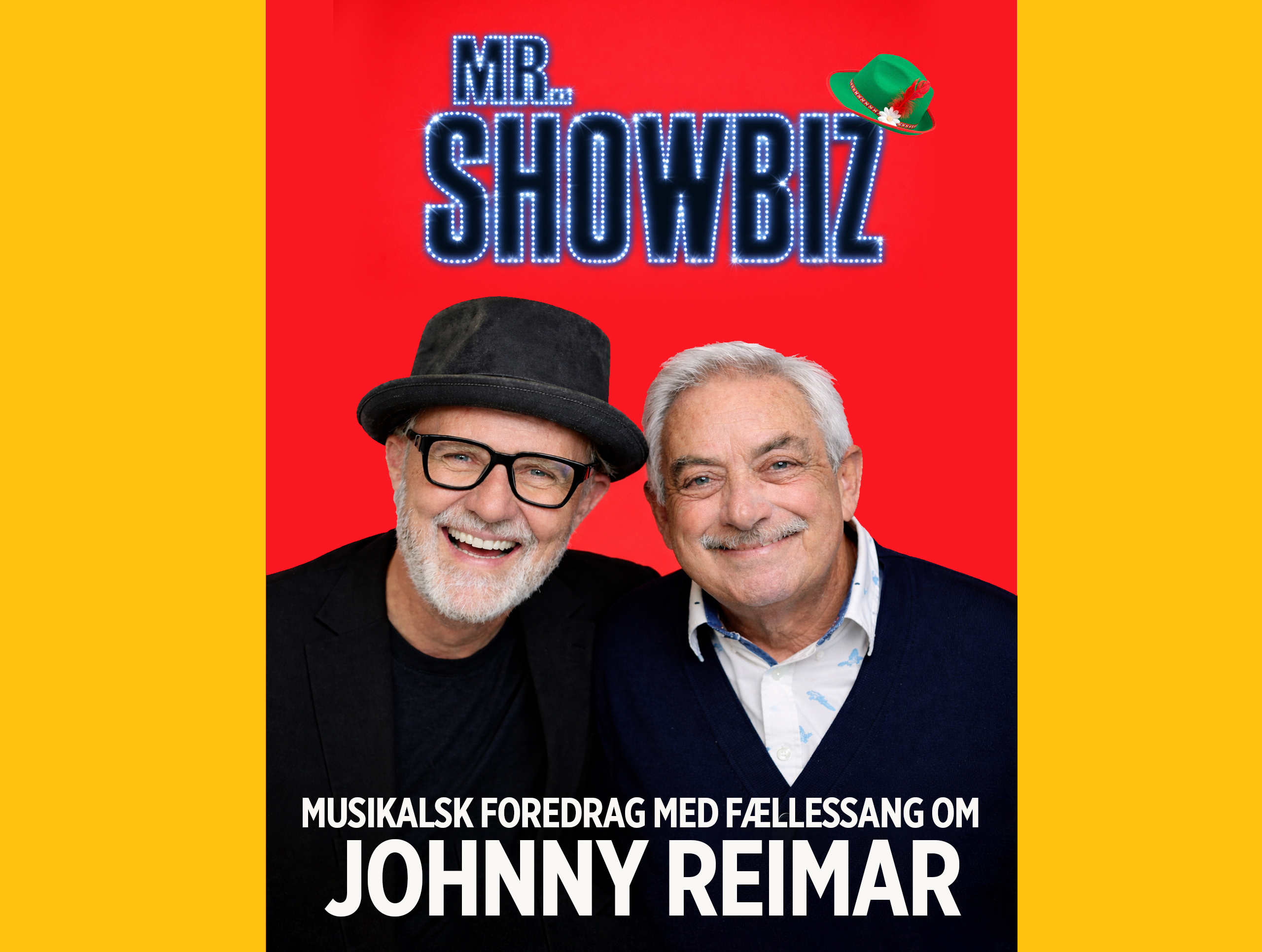 Glæd jer til en musikalsk fortælling om dansktop-sangeren, showmanden og pladeproducenten Johnny Reimar – om hans liv og karriere gennem mere end 40 år med både op- og nedture. Undervejs spiller og synger jeg en perlerække af hans største hits som Sikke’n fest, Lille fregnede Louise og Du burde købe dig en Tyrolerhat – og mange flere.